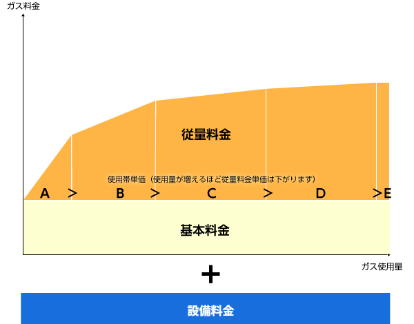 従量料金単価は、使用量が多くなるにしたがい単価が下がっていきます。