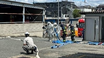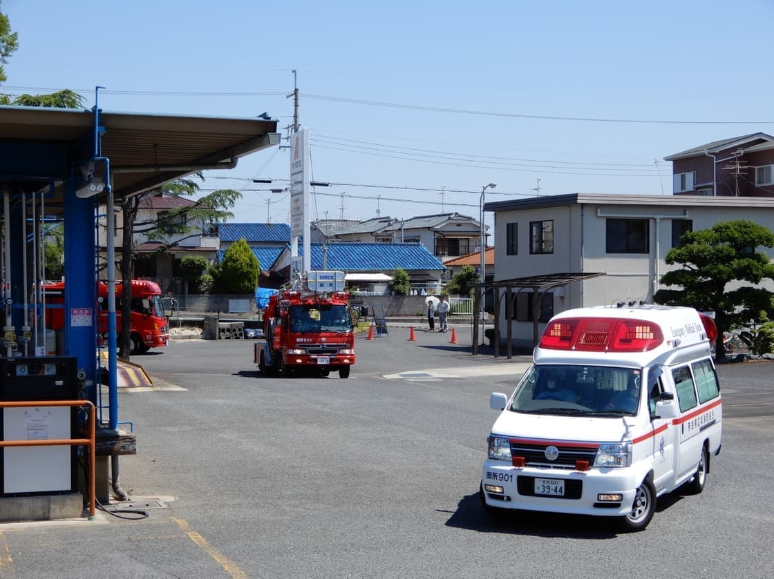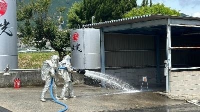本防災訓練は、石油類一般取扱所にて灯油をドラム缶へ注油中に車両が接触、それにより火災発生に対応する訓練を御所消防署と協力をし、迅速かつ適切な緊急対応を行い、被害軽減、二次災害抑止早期復旧を果たすために行う訓練です。