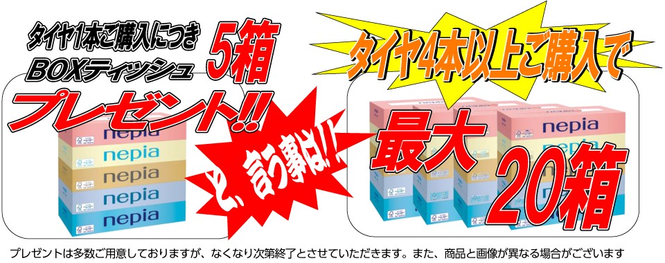 タイヤ交換のお客さまには、沢山あっても困らない「ボックスティッシュ」をプレゼント♡